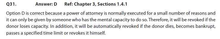 • On Question 31, which reads "Which of the following general power of attorney will continue to have authority to deal with a donor’s financial affairs?”